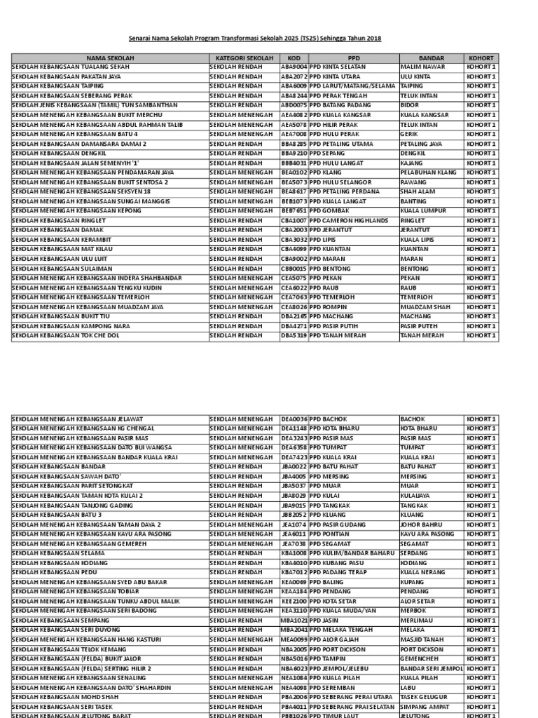 Senarai Terkini Sekolah Berprestasi Tinggi Sbt